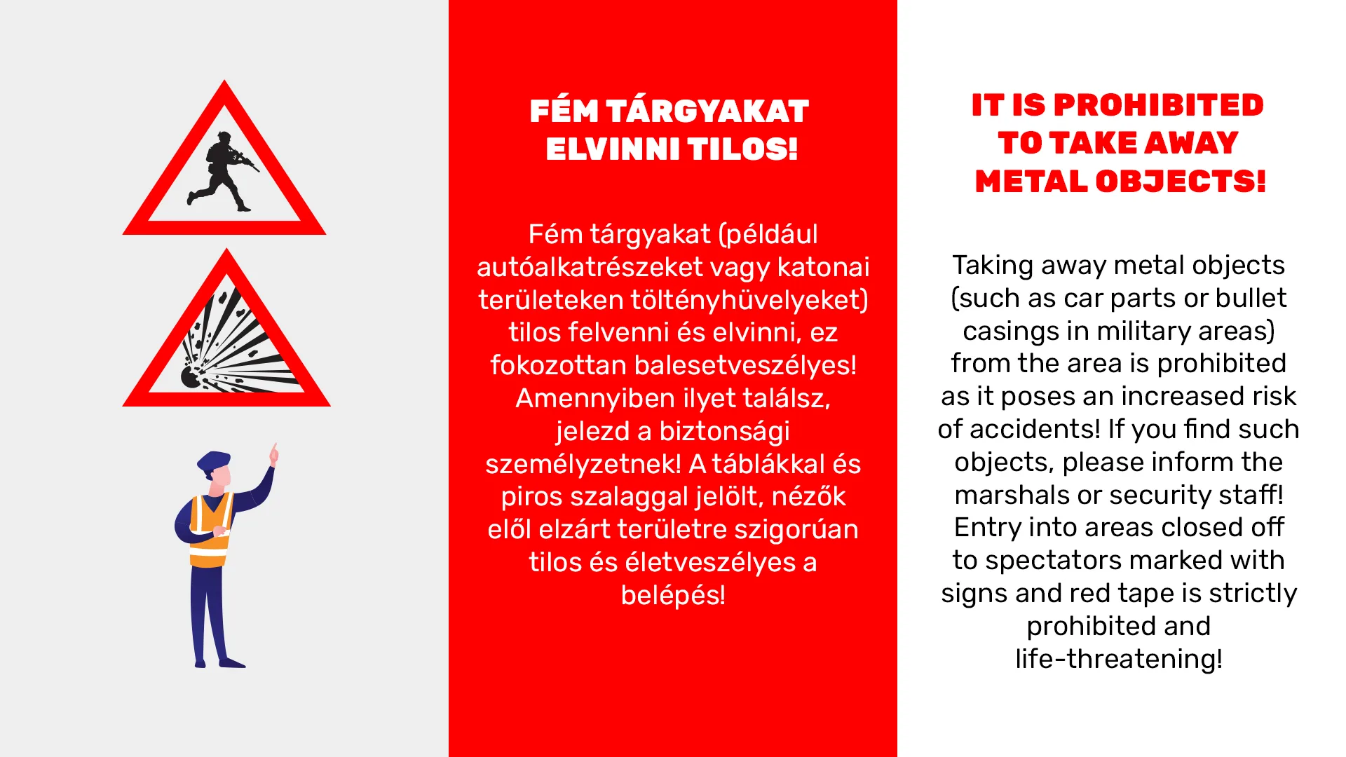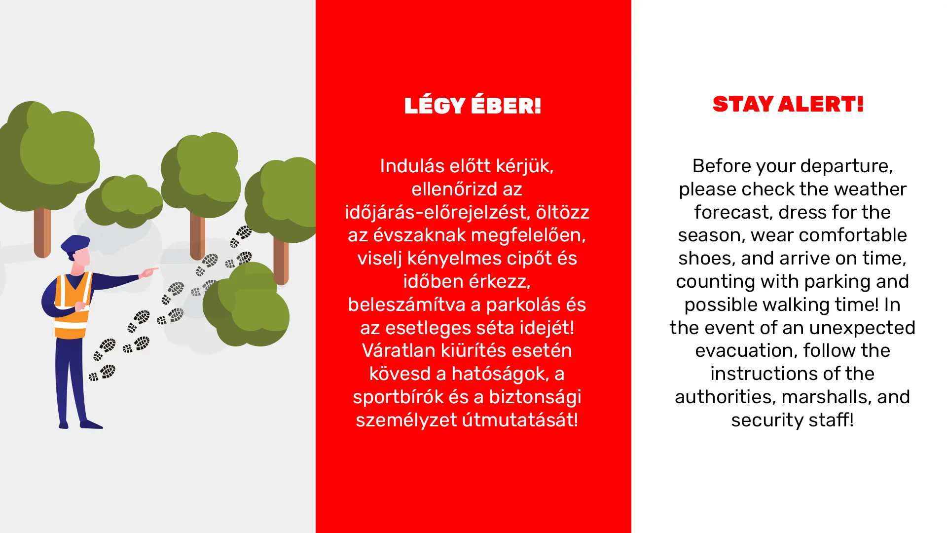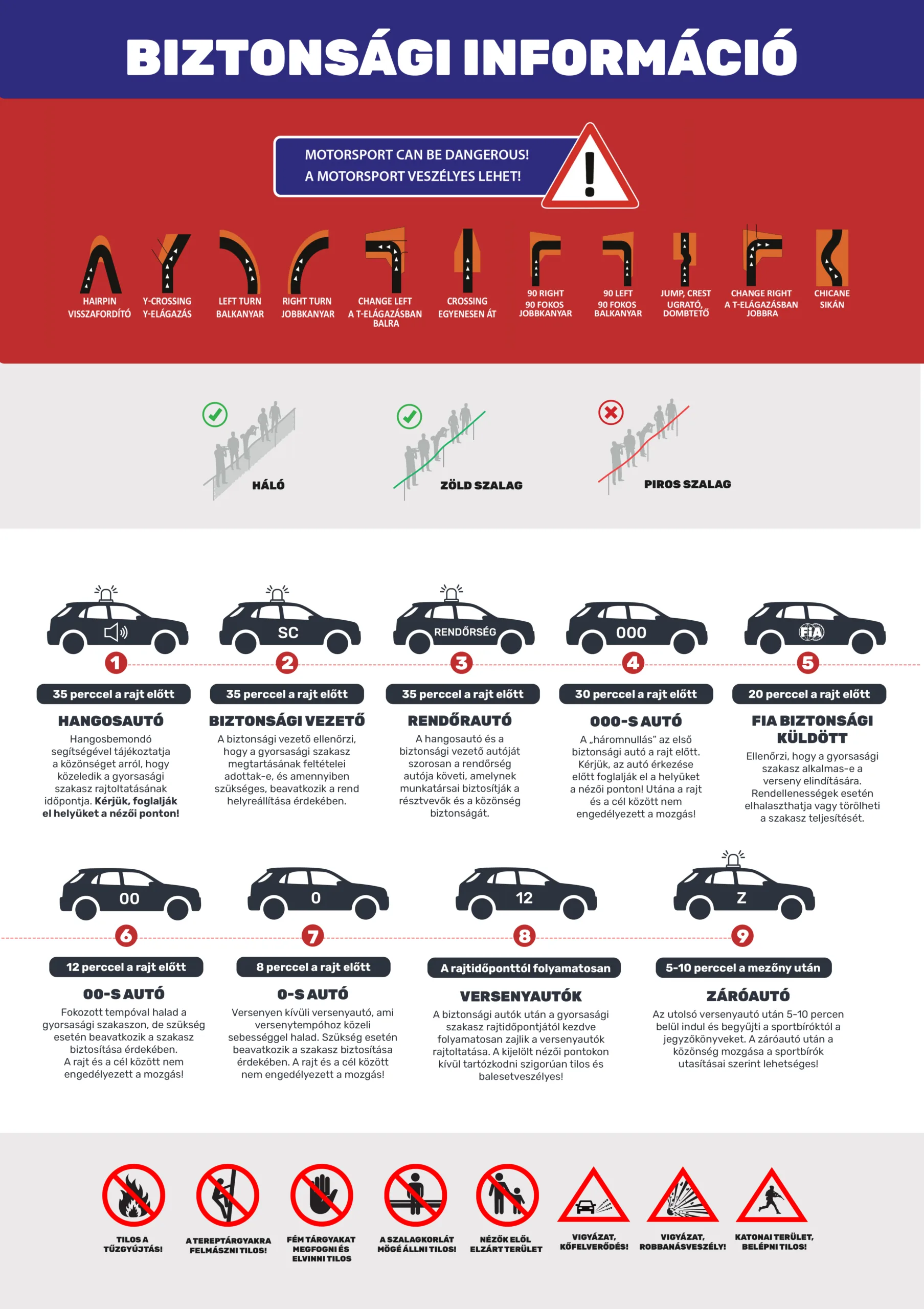 Kérjük, alaposan tanulmányozd az alábbi biztonsági tájékoztatót és a mellékelt illusztrációkat annak érdekében, hogy a verseny látogatása minden pillanatban biztonságos legyen!