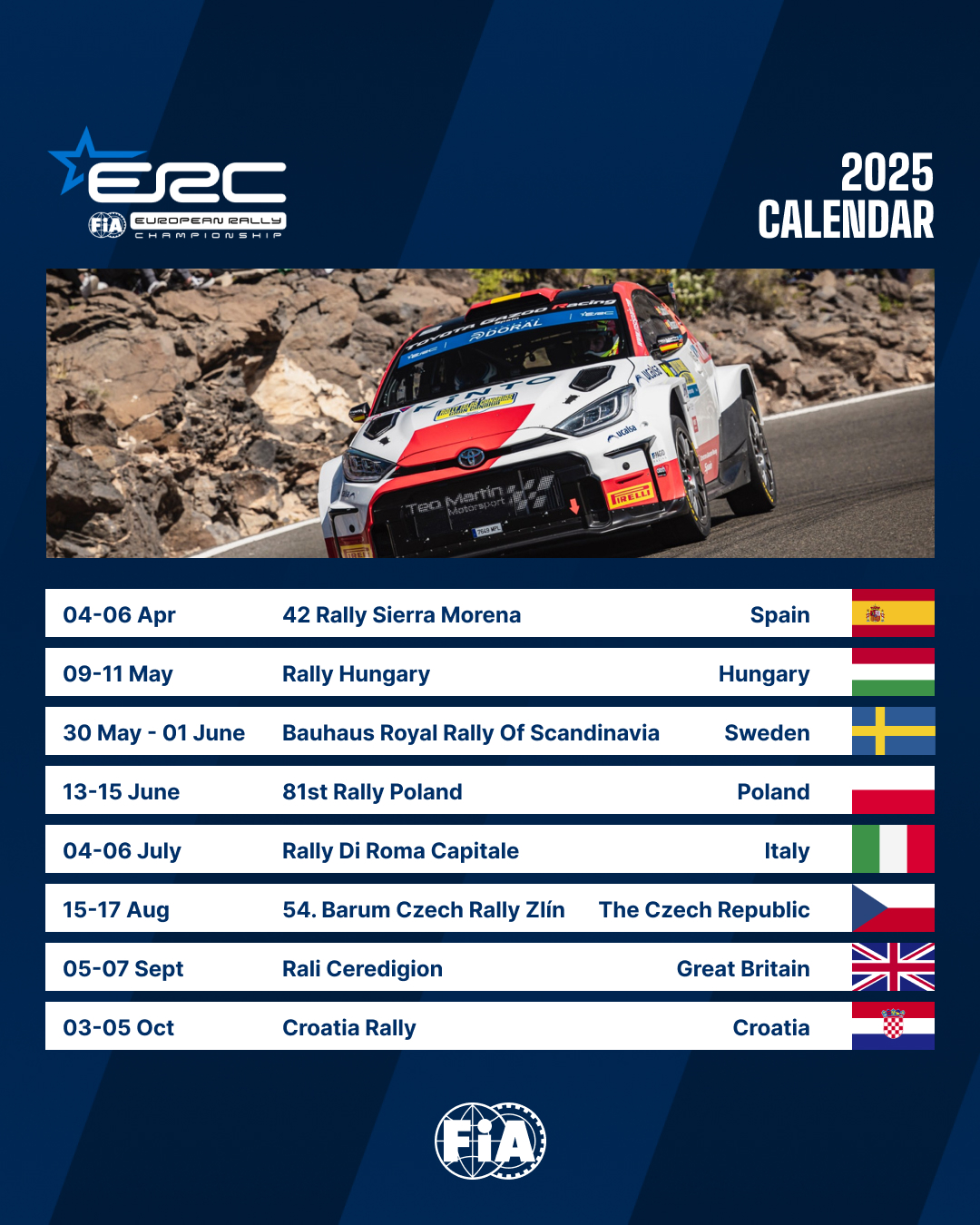 The 2025 FIA European Rally Championship calendar is as follows: