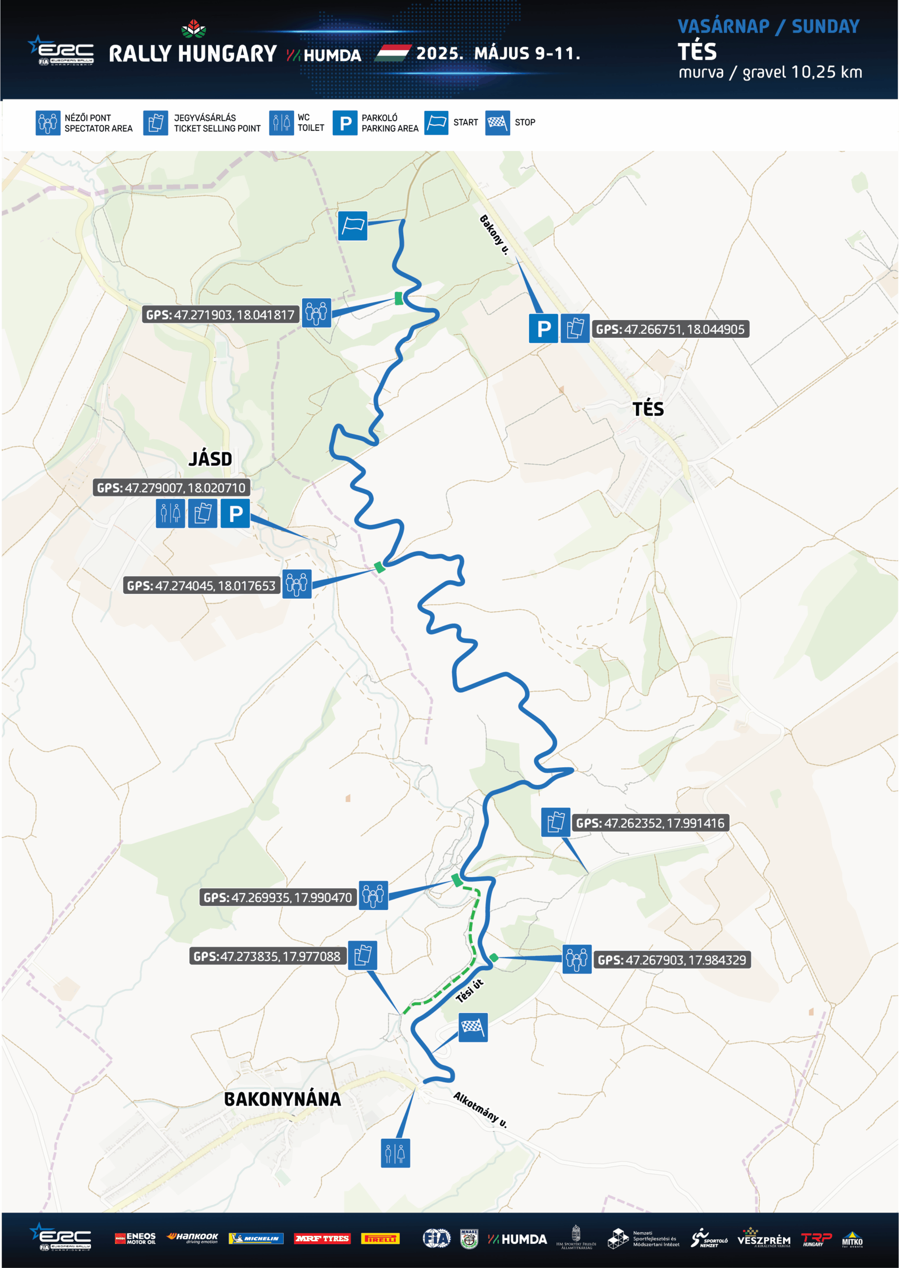 *A térképet letöltve, a koordinátára kattintva a GPS egyszerűen elnavigál a kiválasztott nézői vagy jegyértékesítési pontra és a parkolóba!